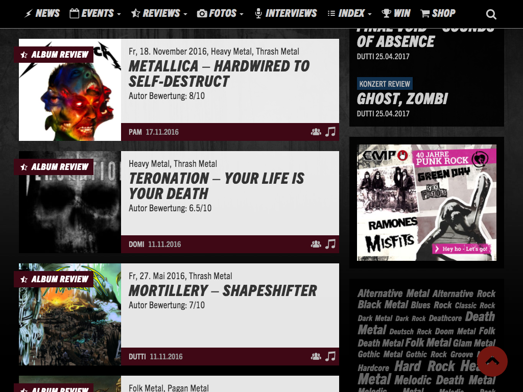 Internetplattform für das grösste Schweizer Metal Web-Fanzine